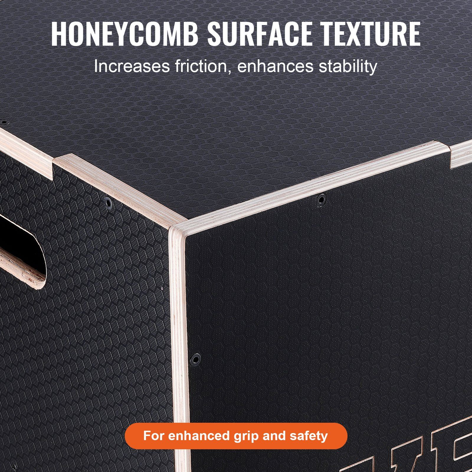 VEVOR 3 in 1 Plyometric Jump Box, 24/20/16 Inch Wooden Plyo Box, Platform & Jumping Agility Box, Anti-Slip Fitness Exercise Step Up Box for Home Gym T