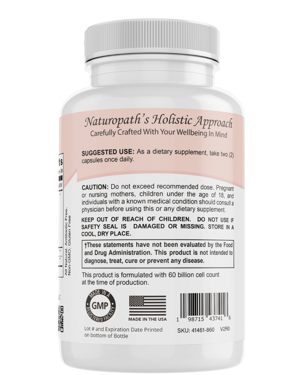 In addition to these probiotic strains, the supplement also features a marine polysaccharide complex and fructooligosaccharides (FOS).