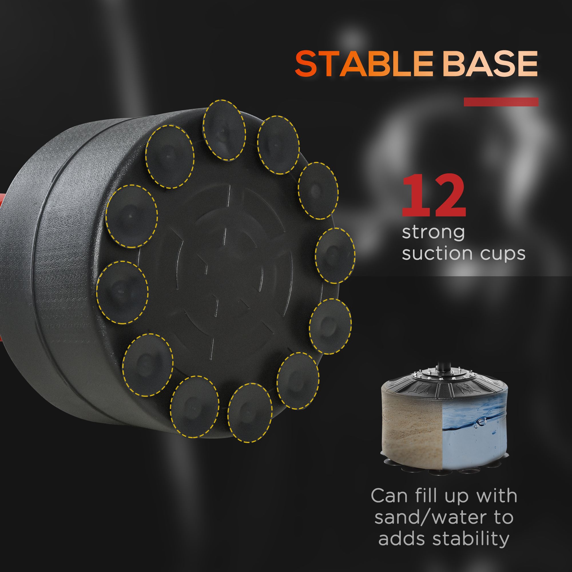 3.- Fillable Freestanding Base: The base of this kickboxing bag accepts either water, sand, or a mix of both, keeping the bag in place. In addition, the boxing bag is equipped with 12 suction cups that allow for better stability. When empty, the kickboxing punching bag is easy to move for storage..